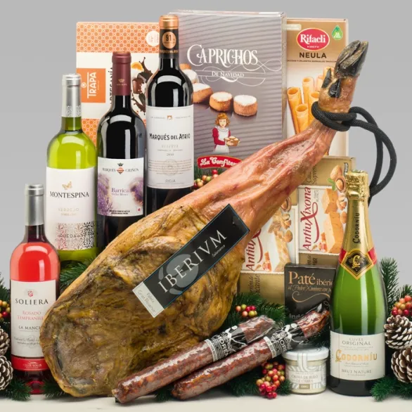 Este lote de Navidad se presenta en una caja de cartón decorada y con asa. Incluye una paleta gran reserva de Salamanca, surtido de botellas de conocidos vinos y cava, así como turrones y un surtido de dulces navideños, embutidos ibéricos de bellota, paté y crema de queso de cabra. Sin duda es otra de nuestras cajas navideñas más reclamadas año tras año por su excelente relación calidad-precio, por ello no tarde en dejar hecho su pedido para asegurarse existencias.